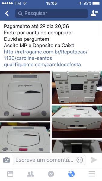 Comentario: Console Completo Sega Saturn, tudo em excelente estado de conservação,vendedor honesto,rapido na negociação, eu recomendo.