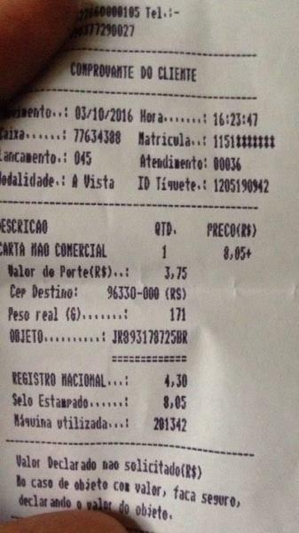 Codigo de Rastreio ( Correios ) :