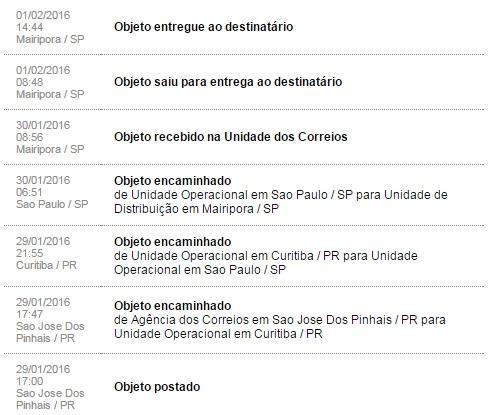 Codigo de Rastreio ( Correios ) :