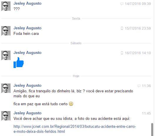 PÉSSIMO! Inventou um acidente, enviou uma foto que pegou na internet para "provar" o que houve. PILANTRA !!!