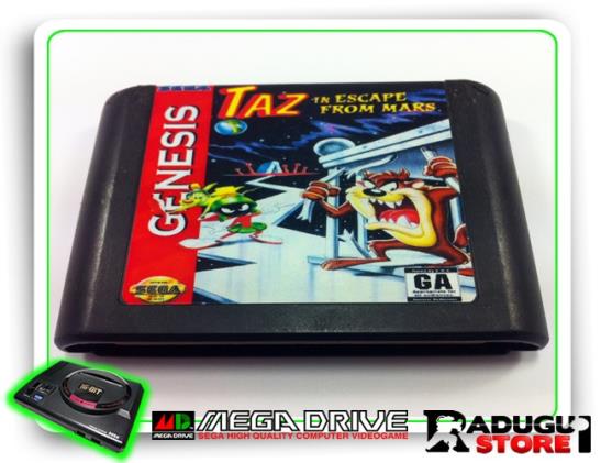 radugui store taz in escape from mars original mega drive, label restaurado, previamente testado, jogo imperdível para sua coleão, versão americana, não perca!!! taz in escape from mars é um jogo de plataorma lanado pela sega em 1994 para o mega drive. apresentando o personagem taz, de looney tunes, o demônio da tazmania do desenho animado. taz deve escapar de marte, onde ele foi levado pelo marvin o marciano. o jogo inclui seis mundos com dois ou três nível em cada um. 1 cartucho original sem caixa e sem manual. garantia: produto usado, previamente testado. a garantia cobre a primeira semana após a data do recebimento do item, a ser observado pelo site dos correios.