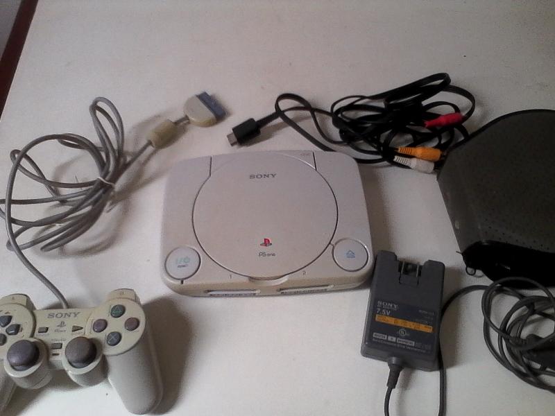 Console Psone completo, com cabos e controles originais.