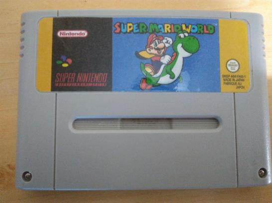 Super Mario World jogo para Super Nintendo reprogramado em Português BR em placa do jogo original Nintendo testado, funcionando e salvando perfeitamente. Placa do jogo e contatos revisados de forma correta e com produto adequado
