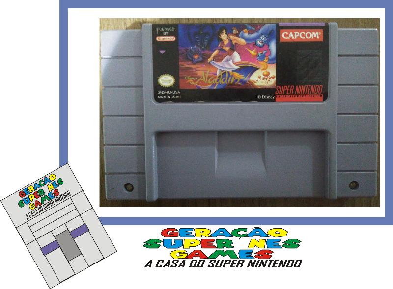 Aladdin Original Americano para Super Nintendo funcionando perfeitamente. Placa do jogo e contatos revisados de forma correta e com produto adequado