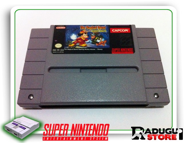 the magical quest starring mickey mouse original super nintendo, em excelente estado de conservaão e previamente testado, jogo imperdível para sua coleão, versão americana, não perca!!! the magical quest starring mickey mouse é um jogo de plataforma lanado em 1992 para o super nintendo. este foi o primeiro de uma série de 3 magical quests feitos pela capcom. mickey desta vez é um mago que tem a habilidade de atirar magias, também um bombeiro que atira água e um escalador que consegue se agarrar a certas superfícies e objetos. 1 cartucho original sem caixa e sem manual. garantia: produto usado, previamente testado. a garantia cobre a primeira semana após a data do recebimento do item, a ser observado pelo site dos correios.